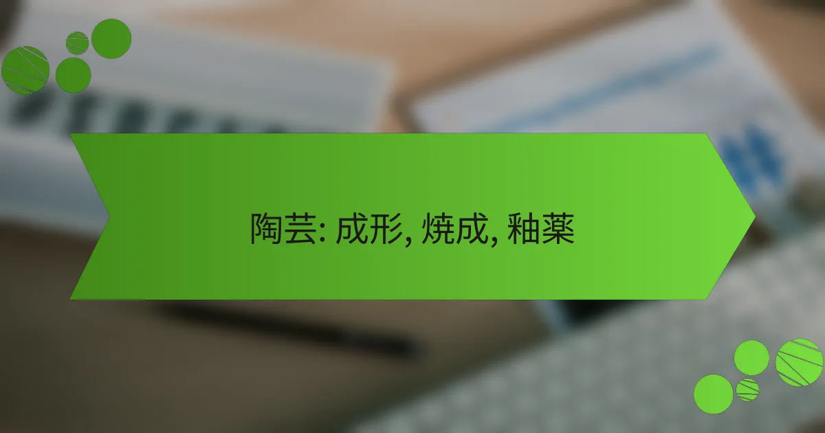 陶芸は、粘土を用いて美しい形状を成形し、焼成によってその作品を高温で硬化させるアートです。成形、焼成、そして釉薬の施用は、陶器の機能性と美しさを引き出すための重要なプロセスであり、各ステップが作品の最終的な品質に大きく影響します。